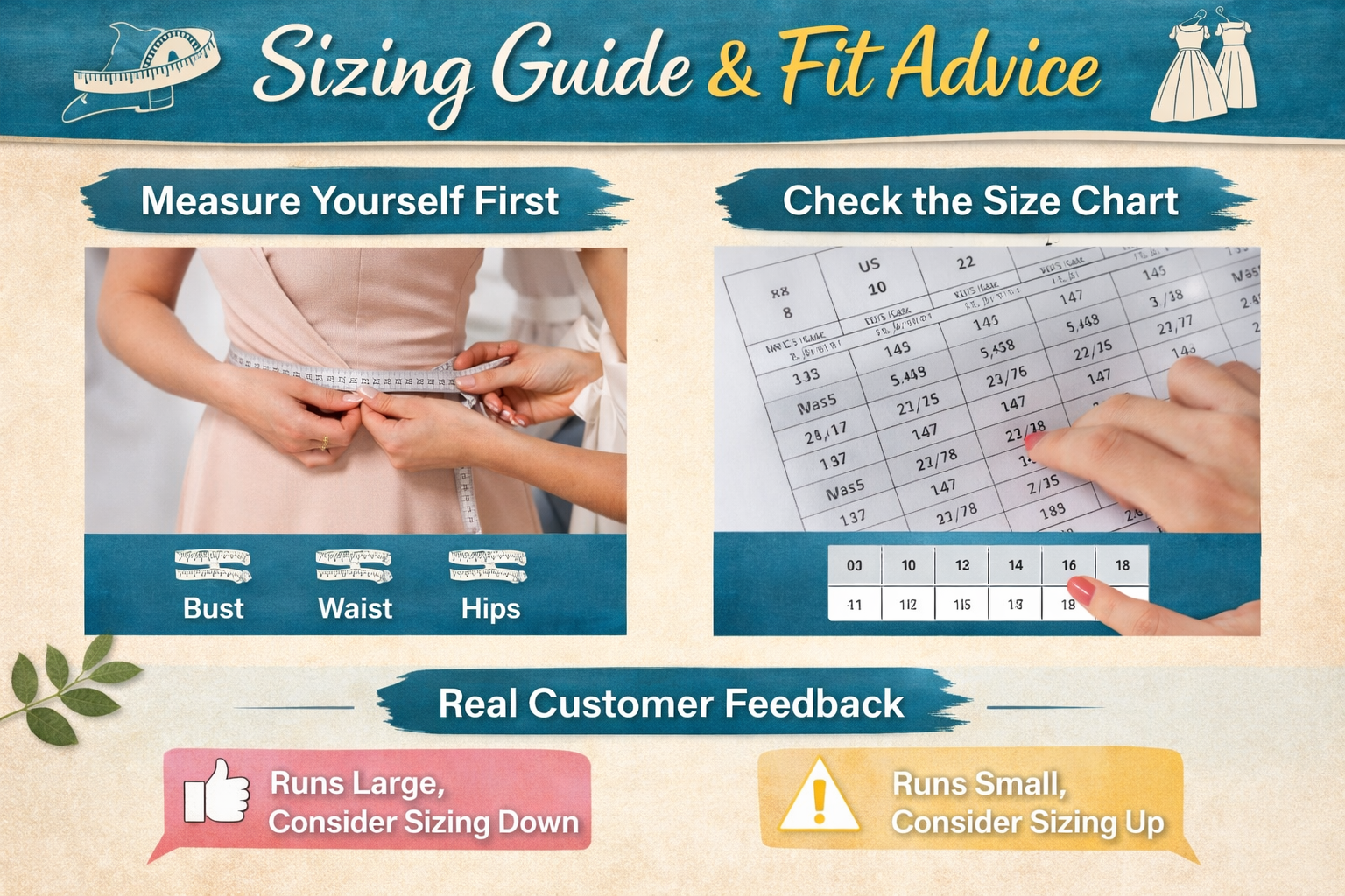 Always check the size chart. Don’t rely on your usual UK size—measure yourself first.